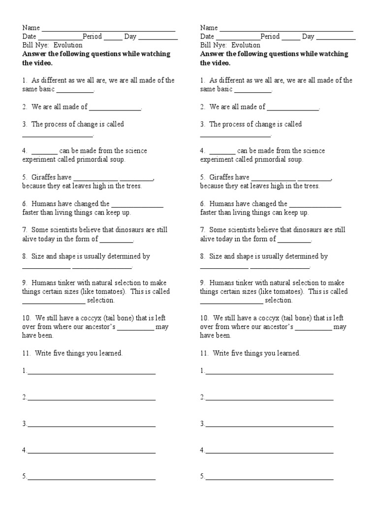 Bill Nye Evolution Worksheet