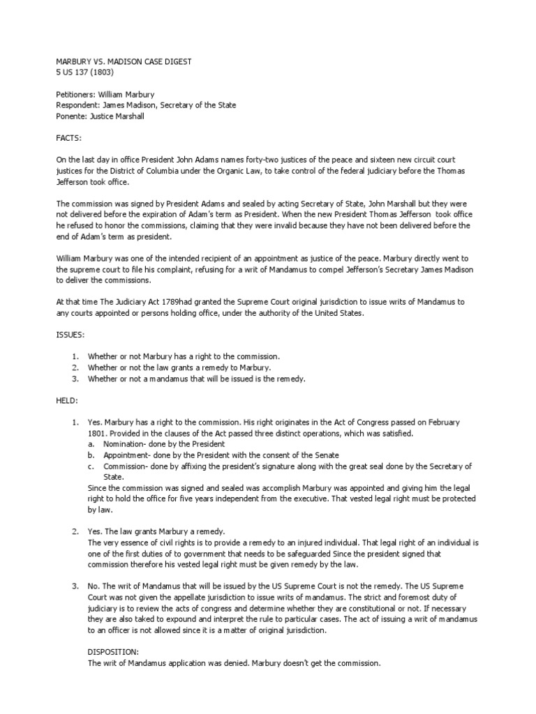 Marbury sued james madison and asked the supreme court of the united states to issue a writ of mandamus a court order that requires an official to perform or refrain from performing a certain duty. This product contains a rap about marbury v. Links for activity files.